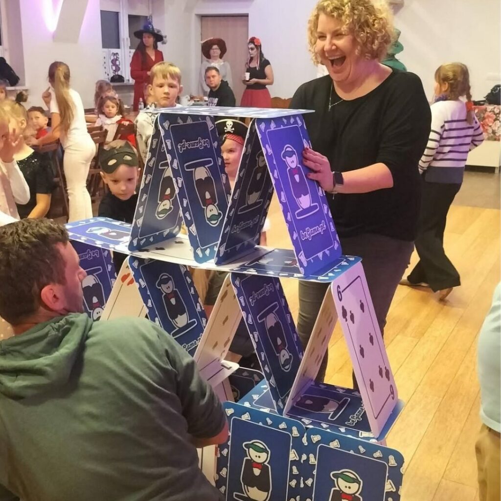 Tak duże karty robią ogromne wrażenie wizualne i natychmiast przyciągają uwagę uczestników. Dzięki nim gra przestaje być tylko stołową rozgrywką, a staje się aktywnym doświadczeniem.