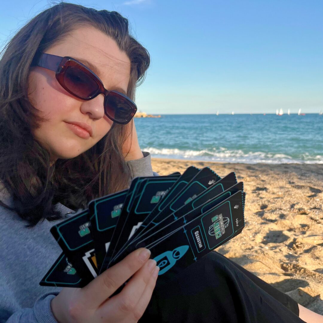 „Bezpieczeństwo w sieci” to szkolna gra stolikowa stworzona po to, by w ciekawy i angażujący sposób wprowadzać młodzież w świat cyberbezpieczeństwa. Uczniowie pracują w drużynach i odpowiadają na pytania z kart wyzwań, wybierając jedną z trzech odpowiedzi. Każda runda trwa krótko i dynamicznie, dzięki czemu gra doskonale sprawdza się na lekcji.