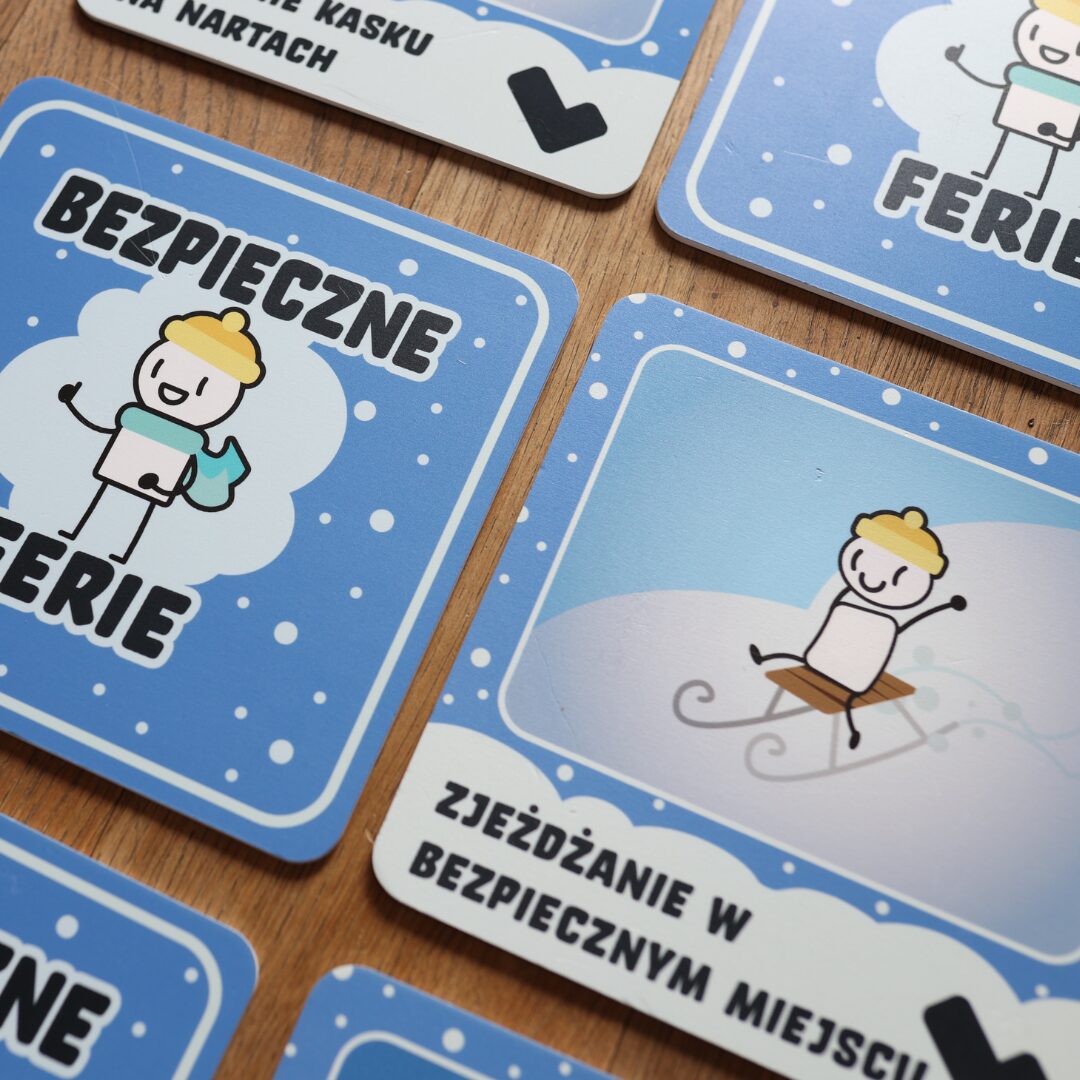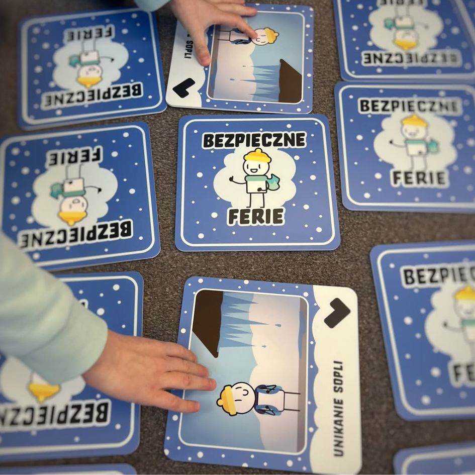 „Bezpieczne Ferie” to edukacyjna gra wielkoformatowa, która w atrakcyjny sposób uczy dzieci zasad bezpieczeństwa podczas zimowych zabaw.