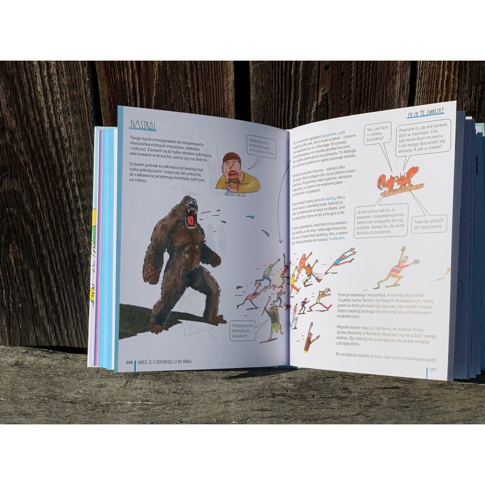Książka uświadamia czym są emocje, skąd się biorą, jak działają i jak je nazwać, ale i pozwala zrozumieć grupowanie emocji na te przydatne i te, które mogą okazać się problematyczne. Zabawny język, który zastosował autor pomoże nam wchłonąć skomplikowane i naukowe zagadnienia, odpowie na nurtujące pytania czy można być bezgranicznie szczęśliwym, dlaczego potrzebujemy emocji i dlaczego czasami nie mamy nad nimi kontroli, czy złość do czegoś się przydaje?