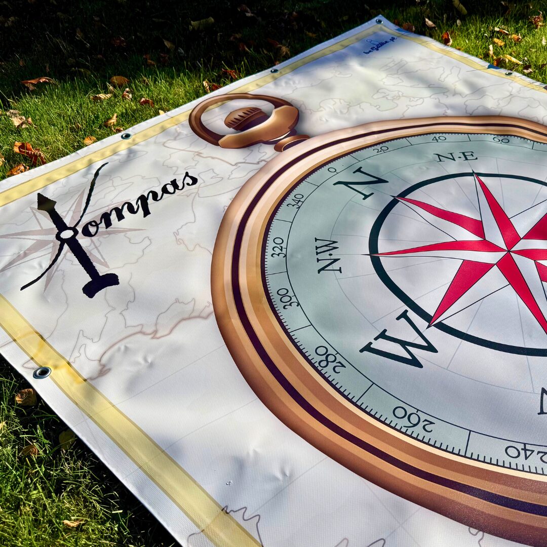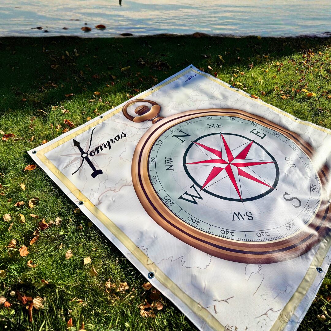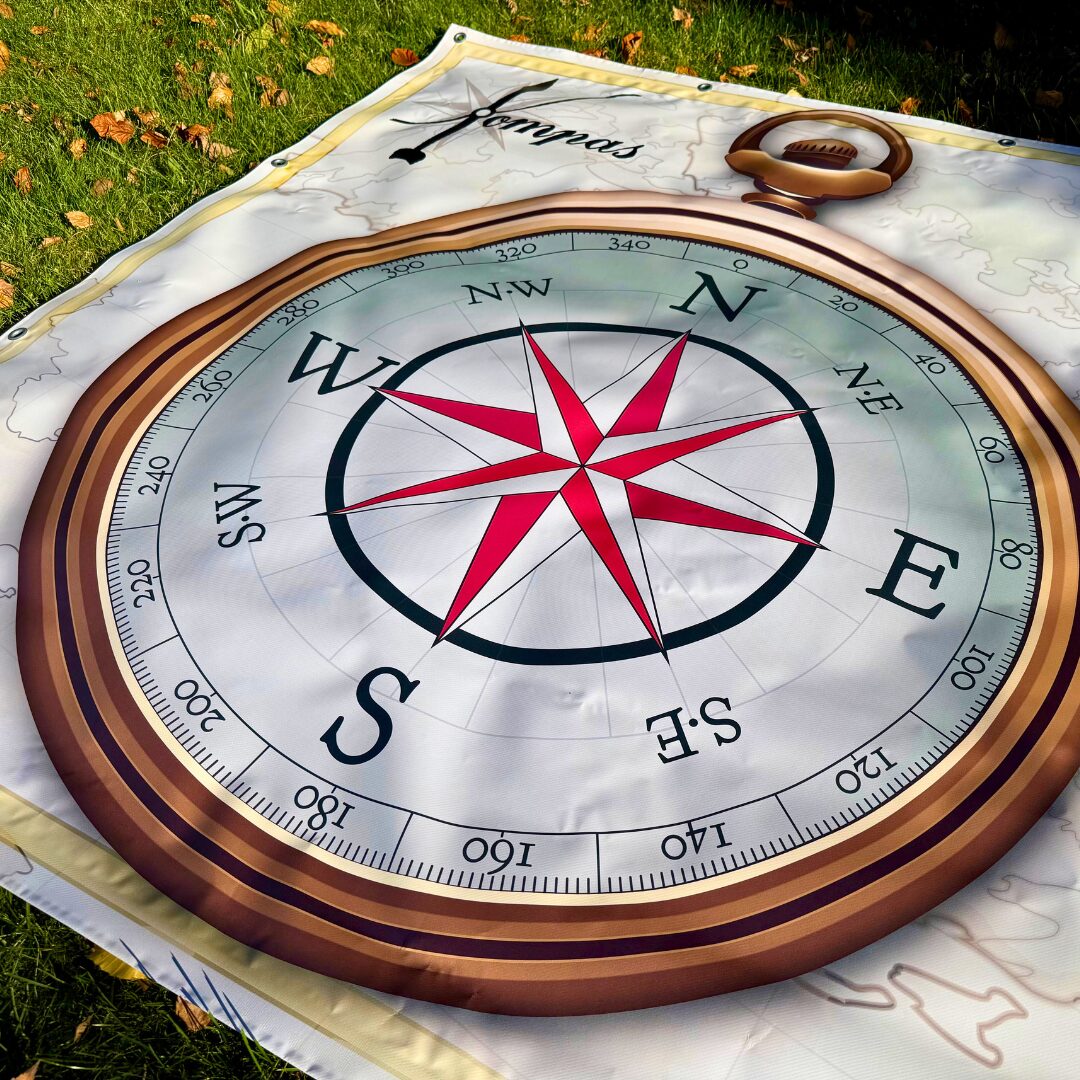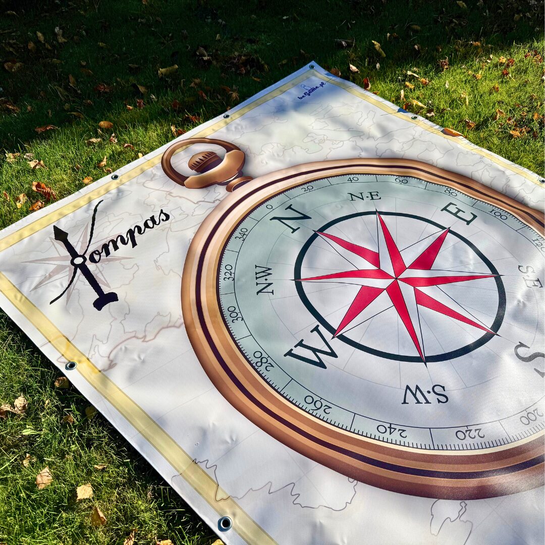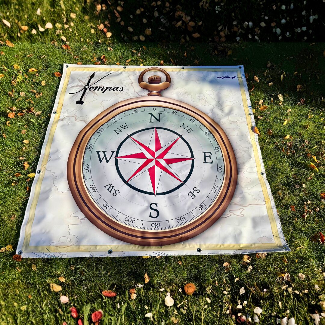 Na dużej macie w kształcie kompasu uczestnicy poruszają się, wskazują kierunki lub sami się nimi stają. Prowadzący podaje polecenie – np. „stań na północy” lub „pokaż wschód” – a zadaniem dzieci jest odpowiednio ustawić się na planszy.