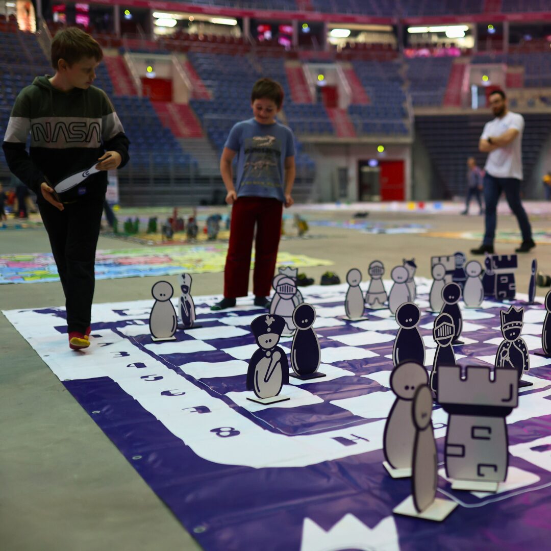 Interaktywność: Gra w wielkoformatowe szachy wymaga od graczy poruszania się i fizycznej interakcji z figurami, co może być świetną zabawą zarówno dla dzieci, jak i dorosłych.
