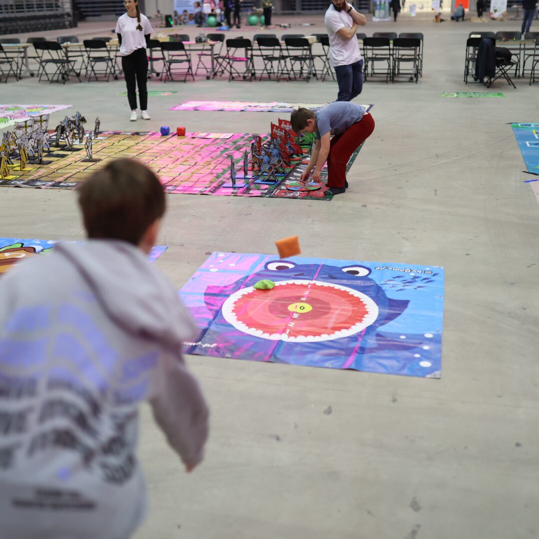 Wielki format gry i zabawna plansza sprawiają, że ,,Tarcza” świetnie sprawdzi się, m.in.: