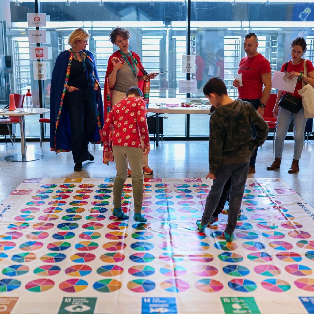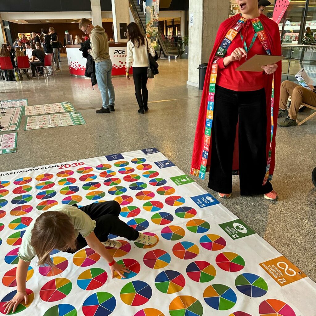 Podczas gry uczestnicy wykonują tytułowe wygibasy, a następnie odpowiadają na pytania związane z SDG. Dzięki temu uczą się, czym są cele zrównoważonego rozwoju i – co najważniejsze – jak każdy z nas może wdrażać je w codziennym życiu.