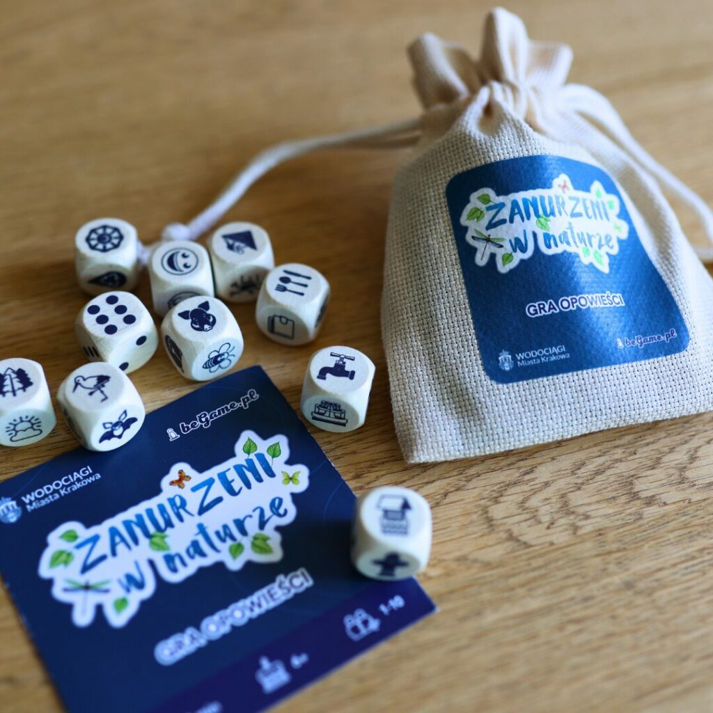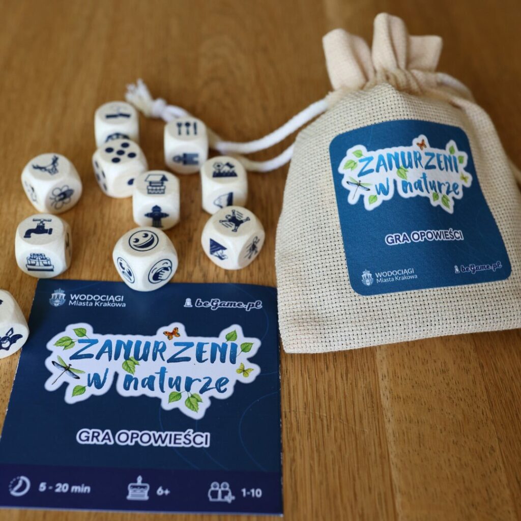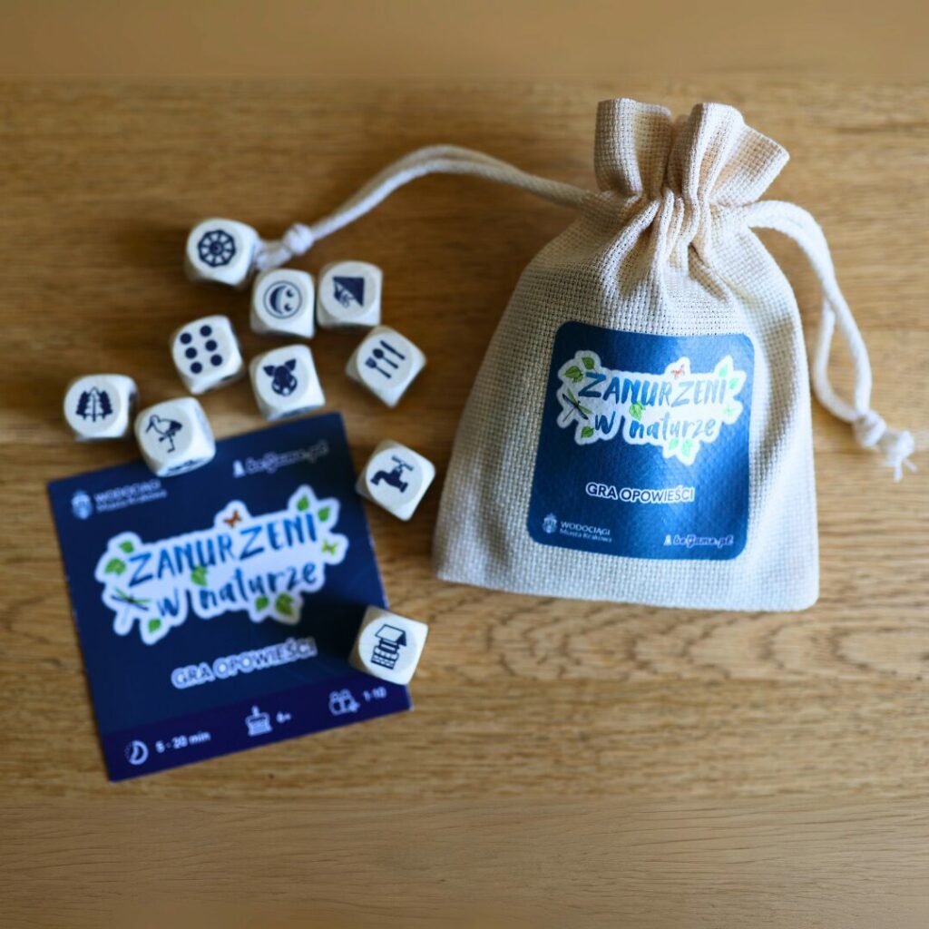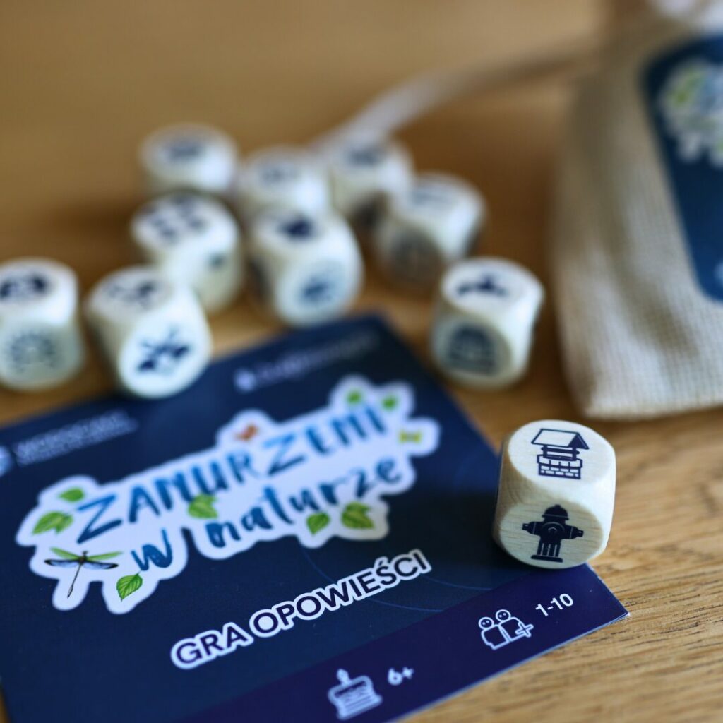 „Zanurzeni w Naturze” to gra, która rozwija wyobraźnię i uczy poprzez doświadczenie. Zamiast gotowych scenariuszy gracze sami budują opowieści, odkrywając rolę wody w ekosystemach, mieście i naturze.